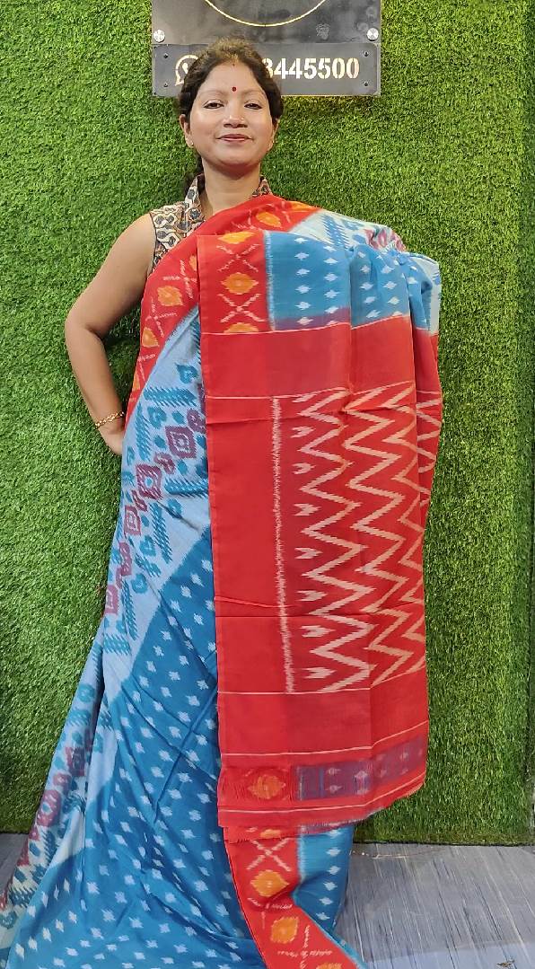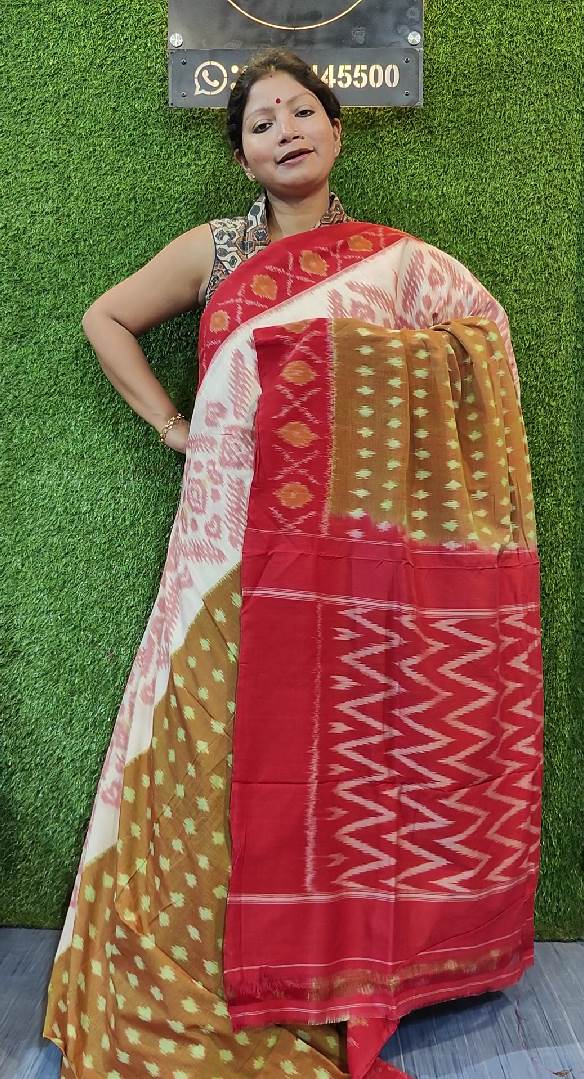 Multicolour Pochampally Ikkat Cotton Double Weaving Saree