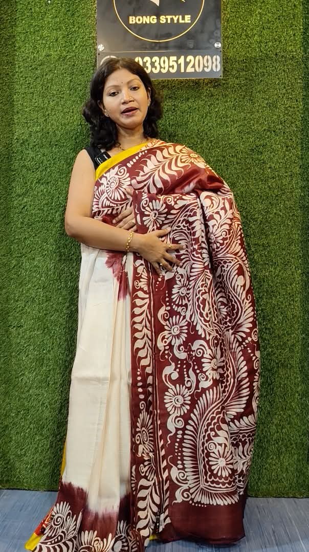 Murshidabad Silk Sarees are known for their intricate designs and weaving techniques, which have been passed down through generations of weavers. These sarees typically feature motifs inspired by nature, such as flowers, leaves, and animals, as well as geometric patterns and traditional designs.